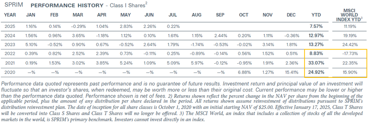 Figure 2. StepStone’s SPRIM Fund Performance (Class I Shares)