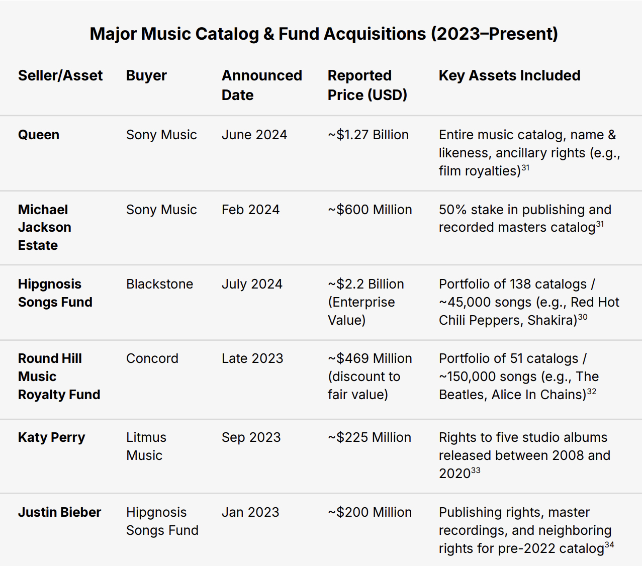 The Transaction: In July 2024, Blackstone acquired the publicly traded Hipgnosis Songs Fund (HSF) in an all-cash deal valued at around $1.58 billion. Including HSF's existing debt, the deal implied a total enterprise value of approximately $2.2 billion. 28
